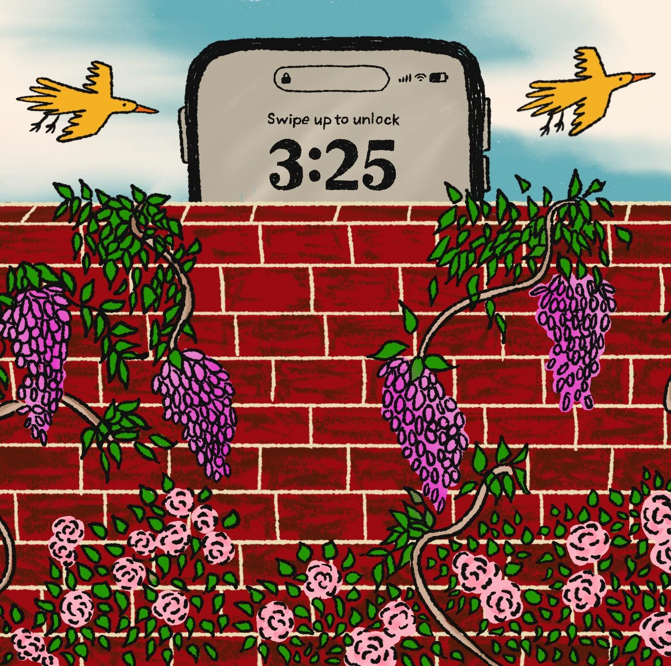 An illustration for a Washington Post essay, “Can’t stop doomscrolling? The ‘Brick’ helped me unplug.”